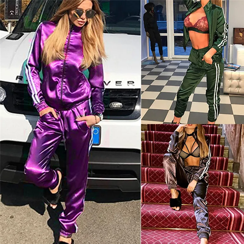 BEST CHRLEISURE Women Set 2018 Autumn Casual Fashion Solid Zipper Fitness Set Polyester Spandex Slim Str