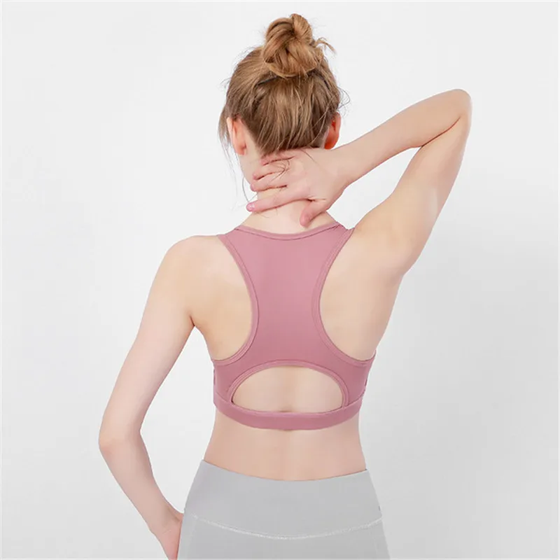 ESHINES Shockproof High Impact Pink Sports Bra Women Padded Yoga Bra Breathable Fitness Tank Top Cr