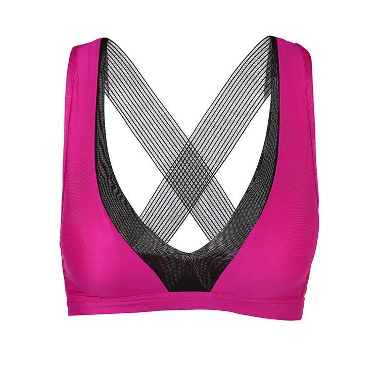 New gauze stitching fish ribbon cross beauty back sexy sports yoga fitness running bra female