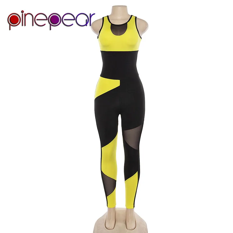 PinePear Mesh Patchwork Sleeveless Jumpsuit Sportwear 2019 Women Backless Playsuit Sport Suit Fitne